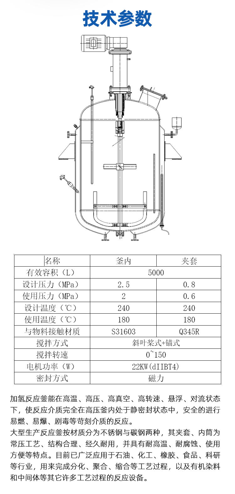 名稱(chēng):高溫高壓加氫反應(yīng)釜