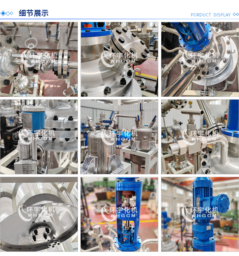 其他附件 如果用戶在釜蓋、釜體開口、內(nèi)部結(jié)構(gòu)、壓力高低、攪拌槳葉、及增加其他輔助裝置(如冷凝回流裝置、冷凝器、恒壓加料罐、接收裝置)等有特殊要求,可完全按用戶的要求加工制造