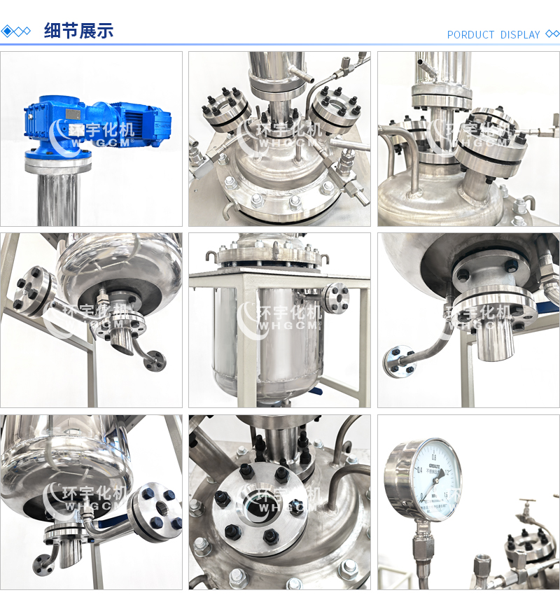 | 其他附件 | 如果用戶在釜蓋、釜體開口、內(nèi)部結構、壓力高低、攪拌槳葉、及增加其他輔助裝置(如冷凝回流裝置、冷凝器、恒壓加料罐、接收裝置)等有特殊要求,可完全按用戶的要求加工制造 | |||