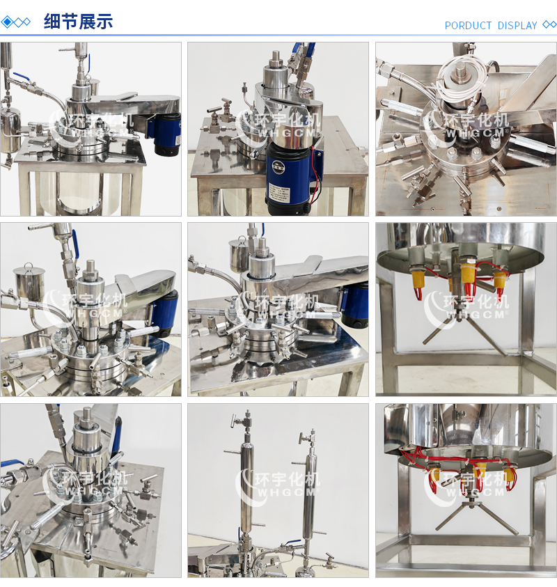 其他附件 如果用戶在釜蓋、釜體開口、內(nèi)部結(jié)構(gòu)、壓力高低、攪拌槳葉、及增加其他輔助裝置(如冷凝回流裝置、冷凝器、恒壓加料罐、接收裝置)等有特殊要求,可完全按用戶的要求加工制造